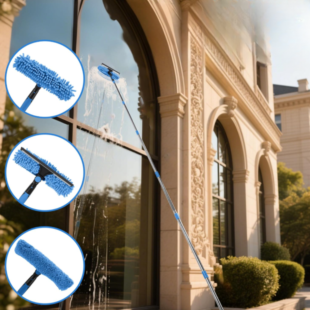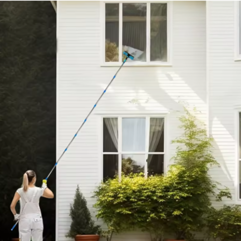 Raclette télescopique 3-en-1 avec brosse microfibre et manche extensible – 4,5 m