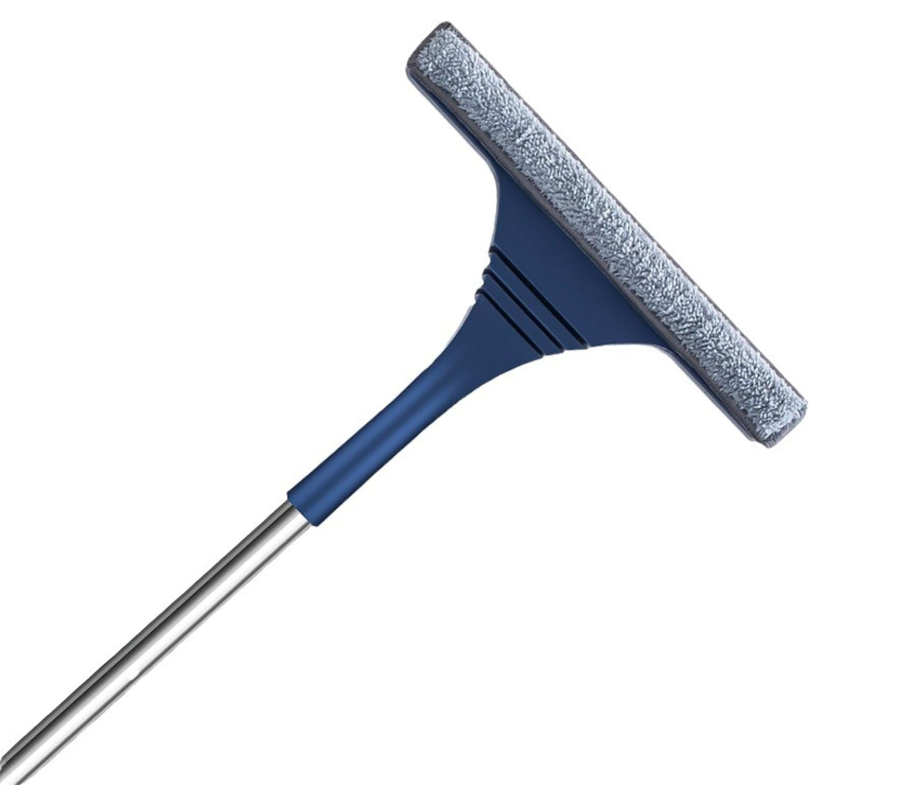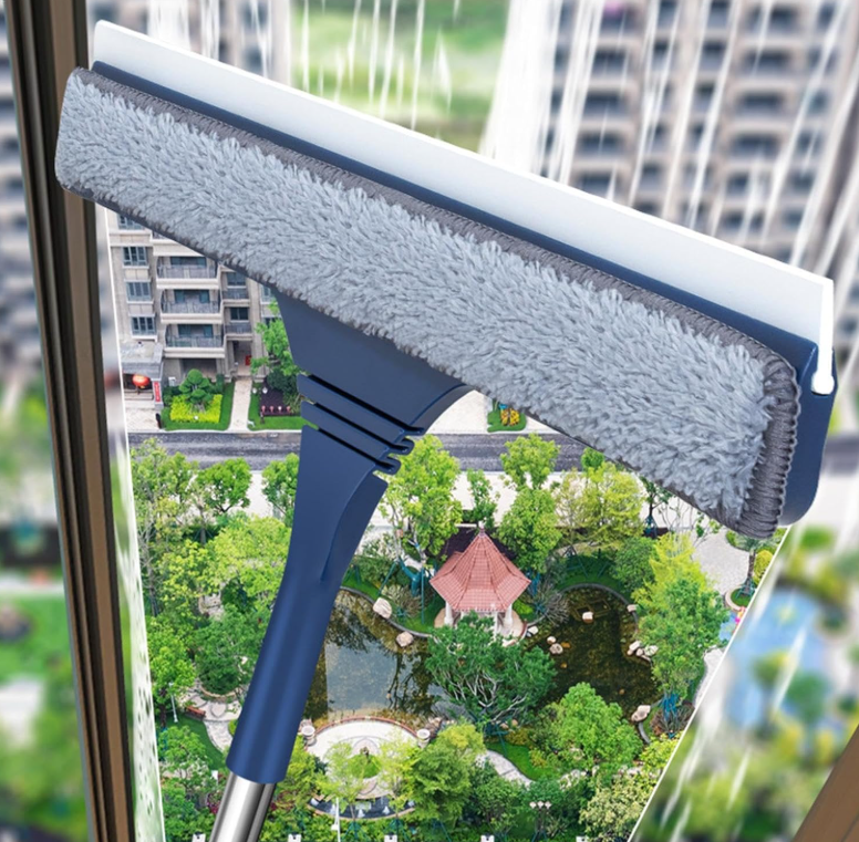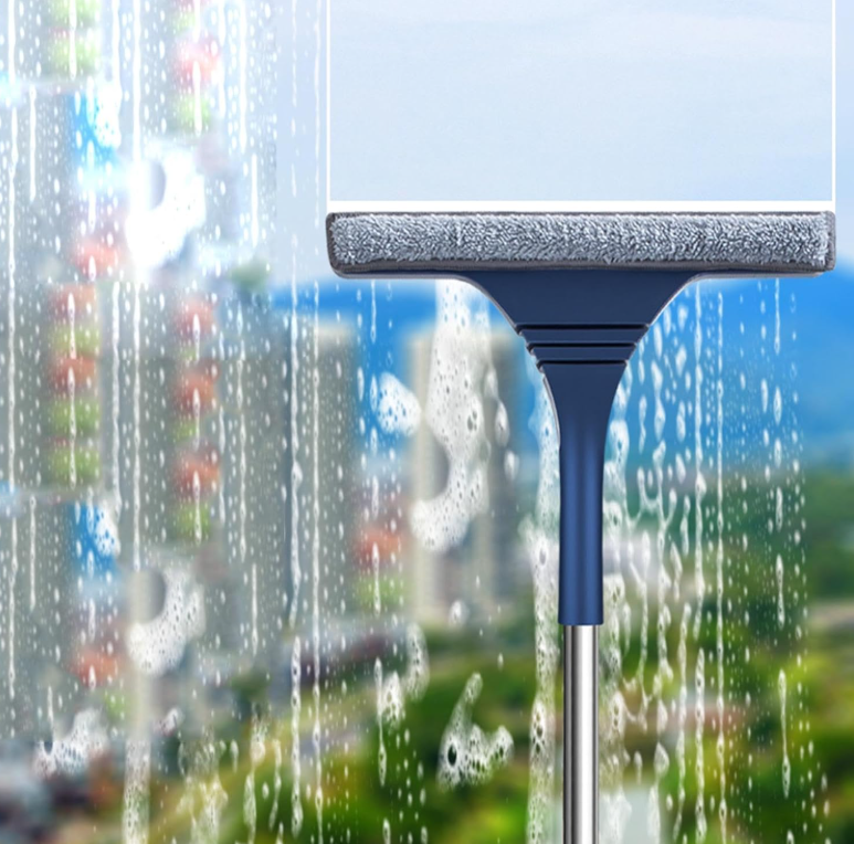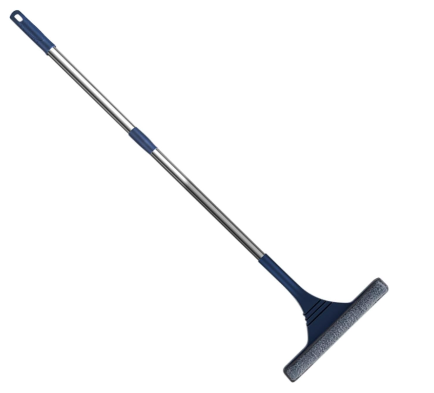 Son manche extensible en acier inoxydable permet d’ajuster la longueur selon le besoin, tandis que sa tête double face combine une raclette en silicone et une éponge absorbante pour un nettoyage complet et sans trace.